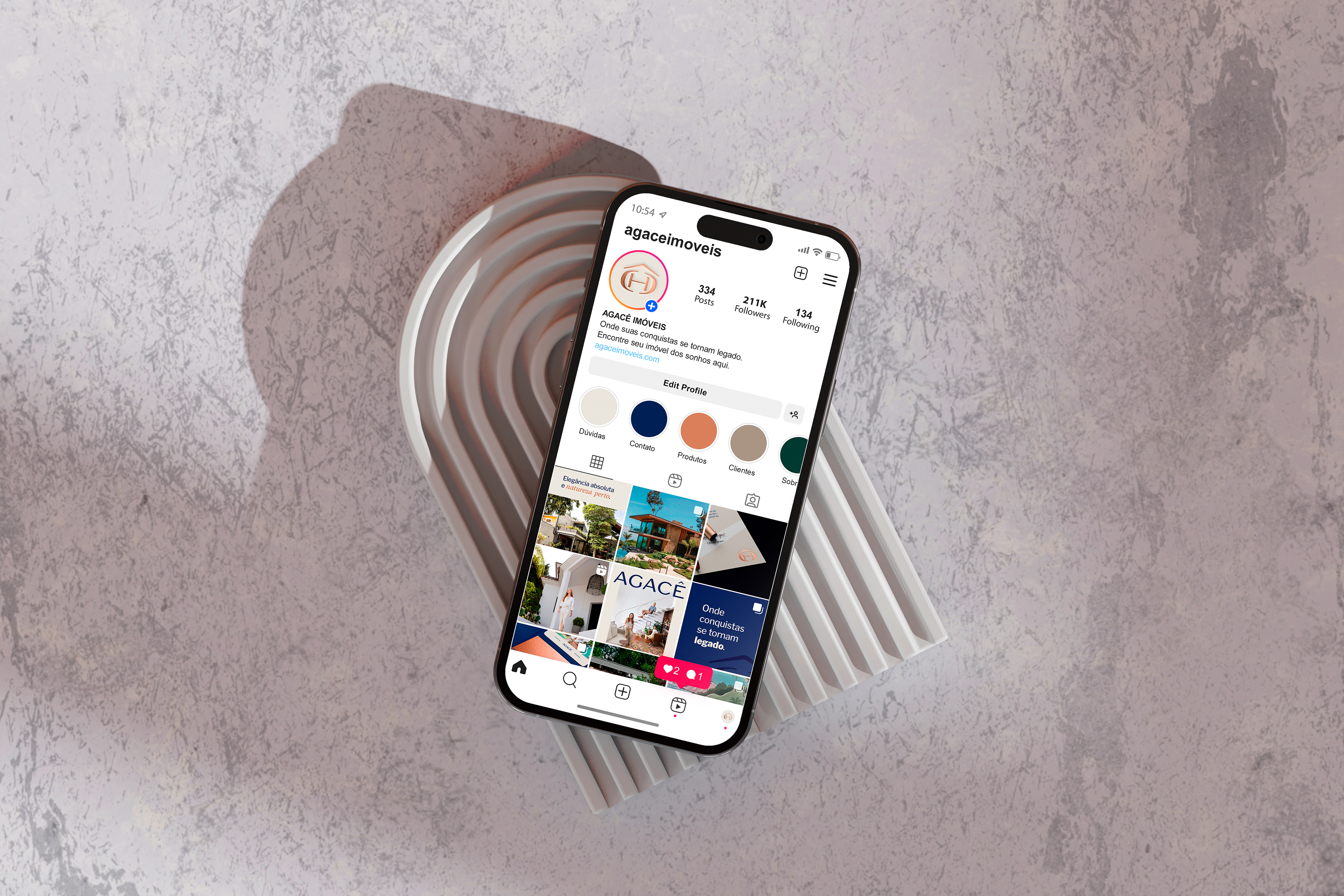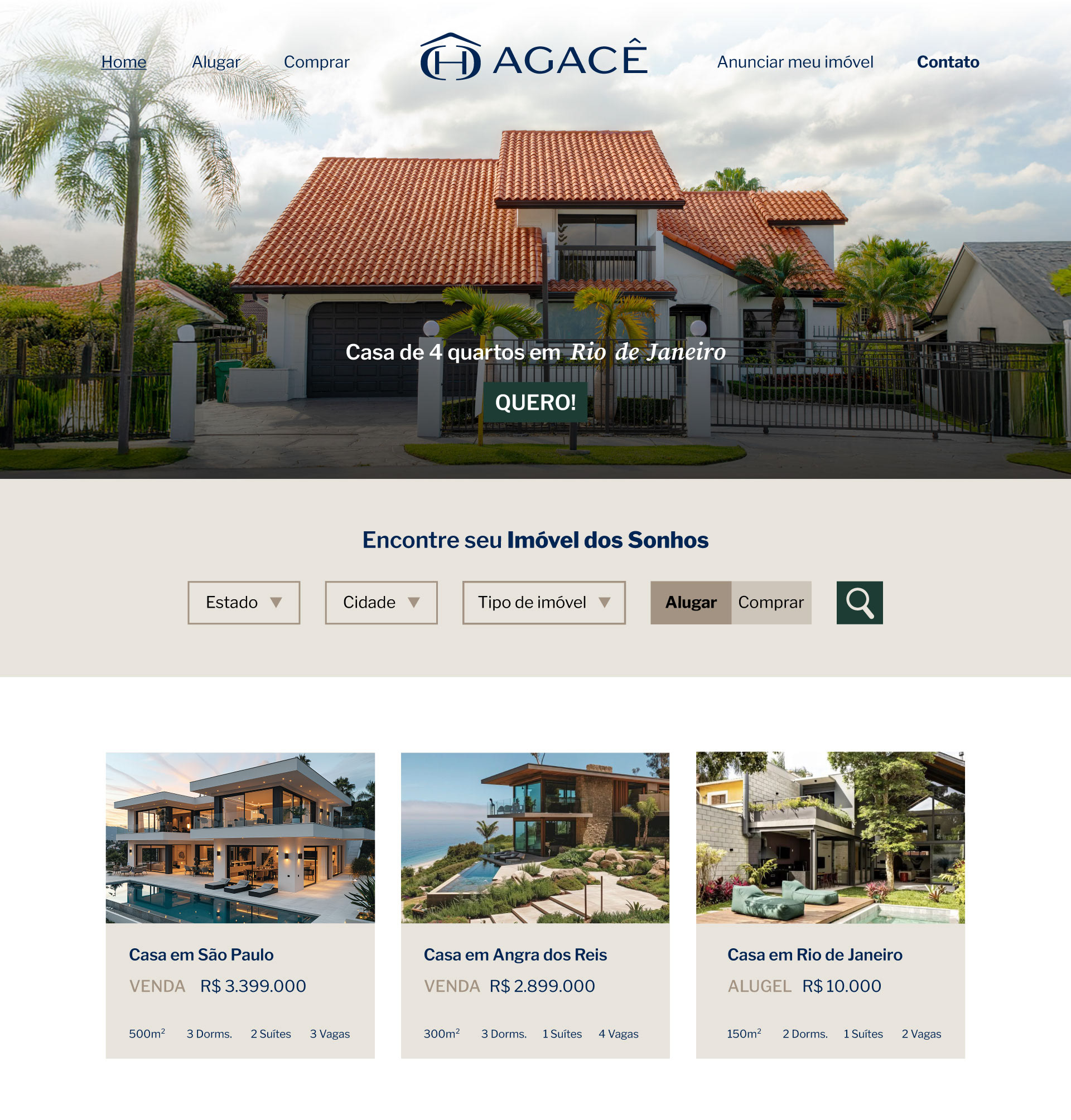 Agacê Imóveis: voltada ao mercado imobiliário de alto padrão, traz uma abordagem mais acolhedora e emocional, conectando lar a conforto, família e realização.