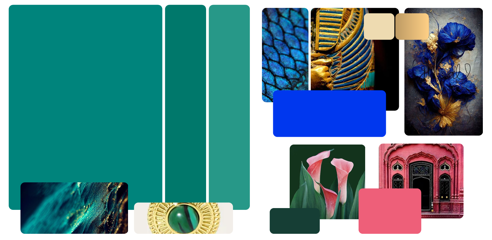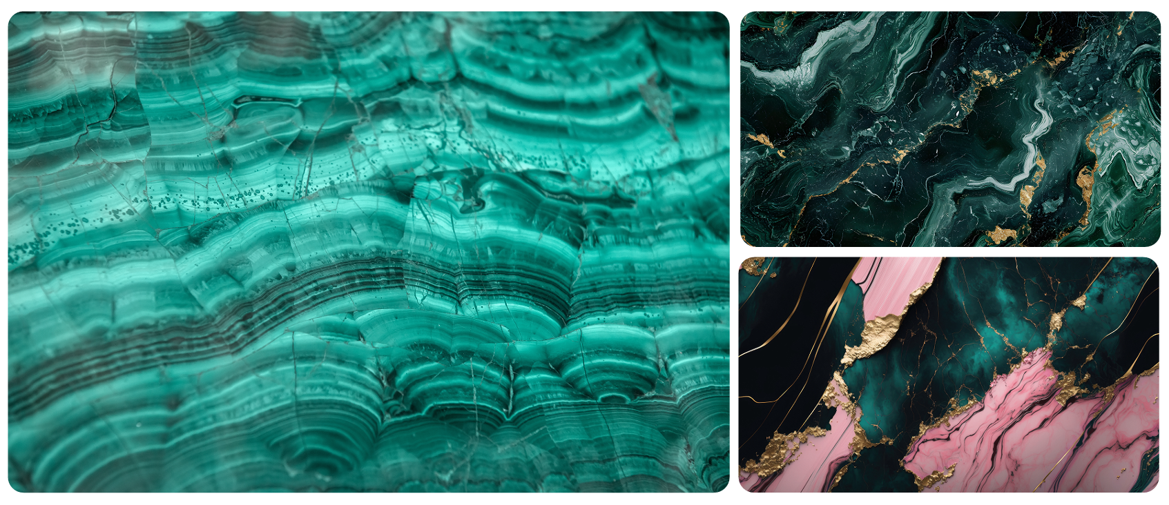 Tangibilizei tudo isso por meio de uma identidade visual com inspirações nos padrões aleatórios das pedras naturais, principalmente a Malaquita e o Lapiz-Lazuli, remetendo a arte e estética poderosa do antigo Egito.