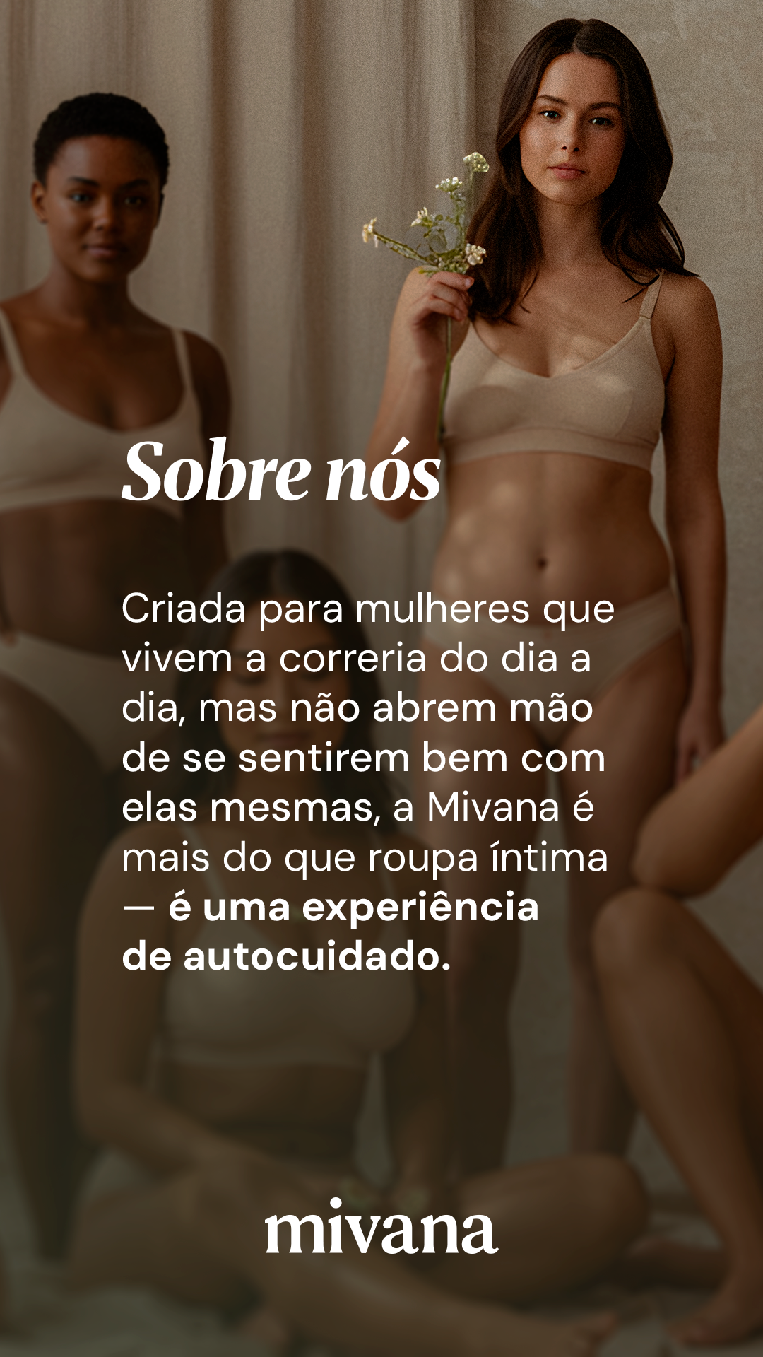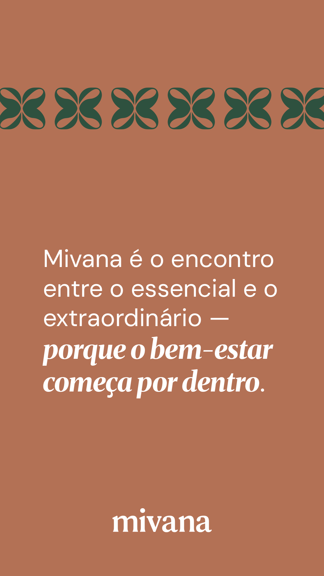 Mivana é uma marca brasileira voltada para mulheres que buscam bem-estar, saúde e estilo de vida equilibrado. Seu propósito é oferecer produtos que unem naturalidade, cuidado e confiança, traduzindo isso em uma identidade visual orgânica e acolhedora.